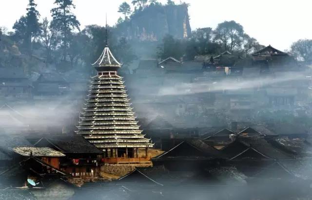 座座鼓樓高聳于侗寨之中,